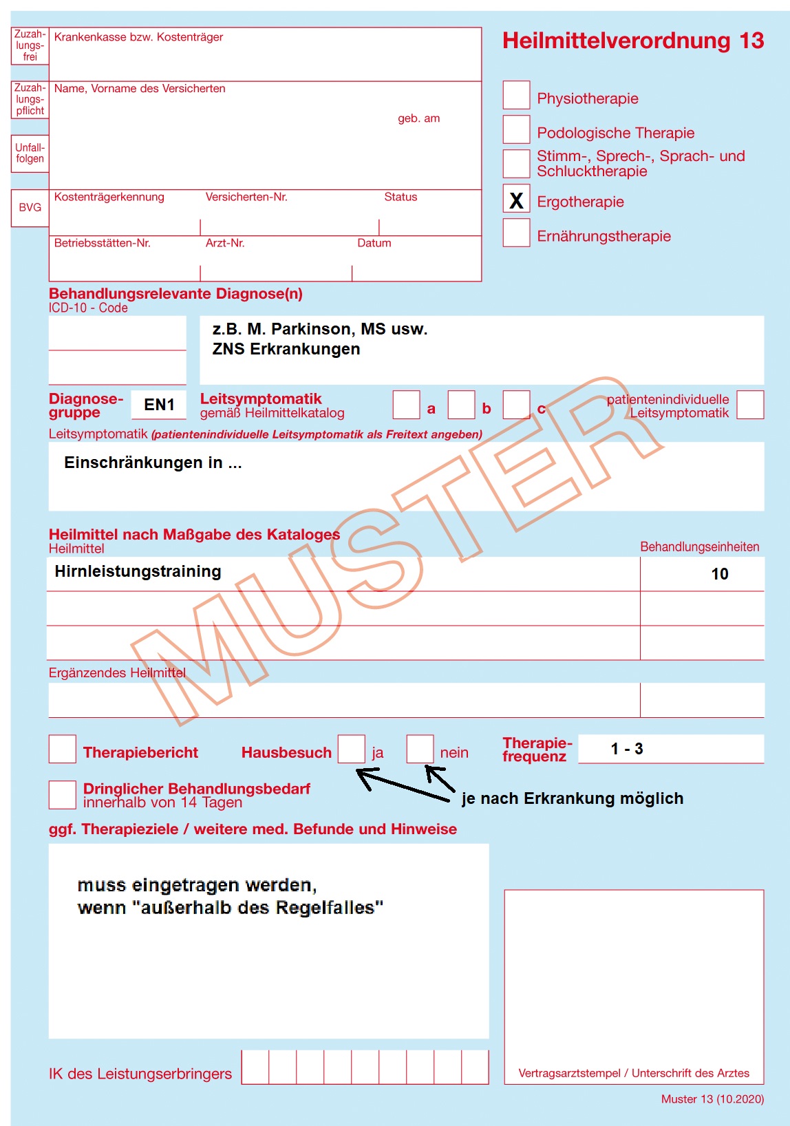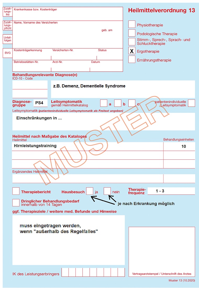 Heilmittelverordnung -Ergotherapie (Formular mit der Nr. 13 blau oder rosa)